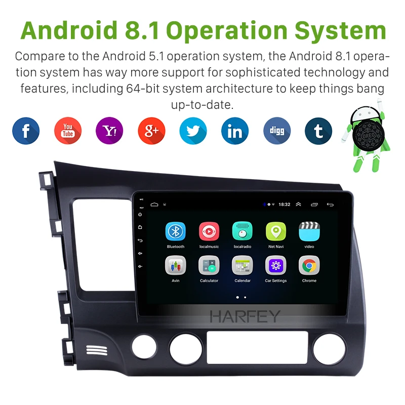 Shop our Harfey 10.1 Inch Head Unit Car Radio 2Din For 2006 2007 2008-2011 Honda Civic Android 8.1 GPS Multi with price US $185.21 , And get 43%OFF